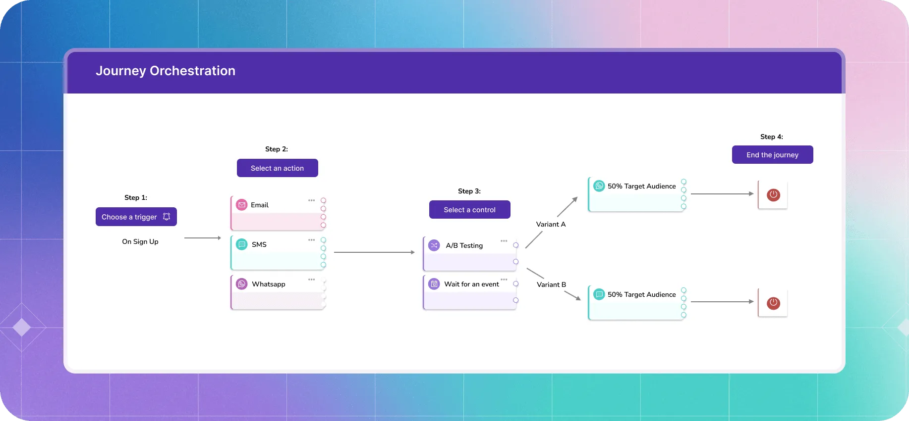 Define and refine your customer journey with precision and flexibility while taking real-time decisions through advanced controls and conditions